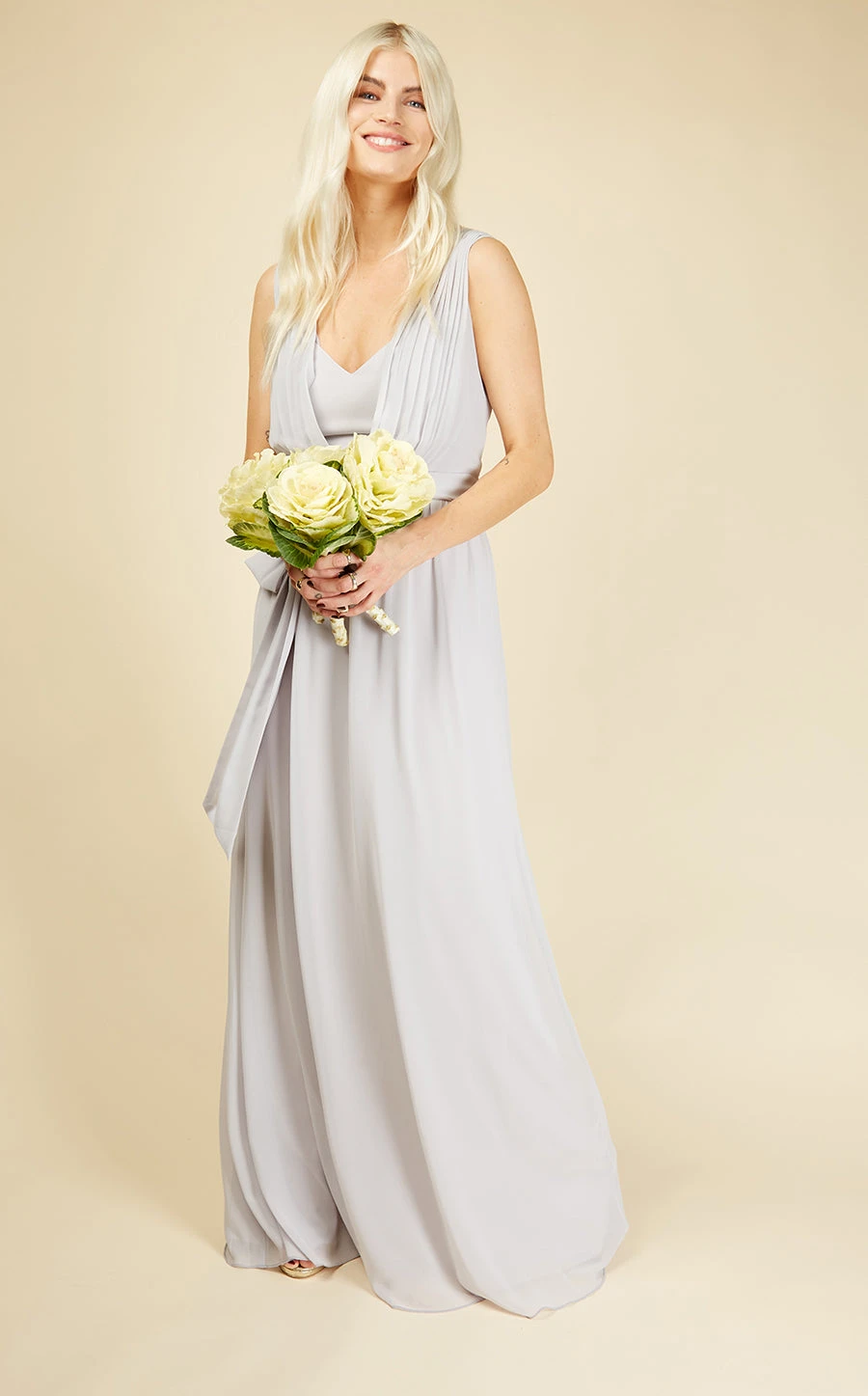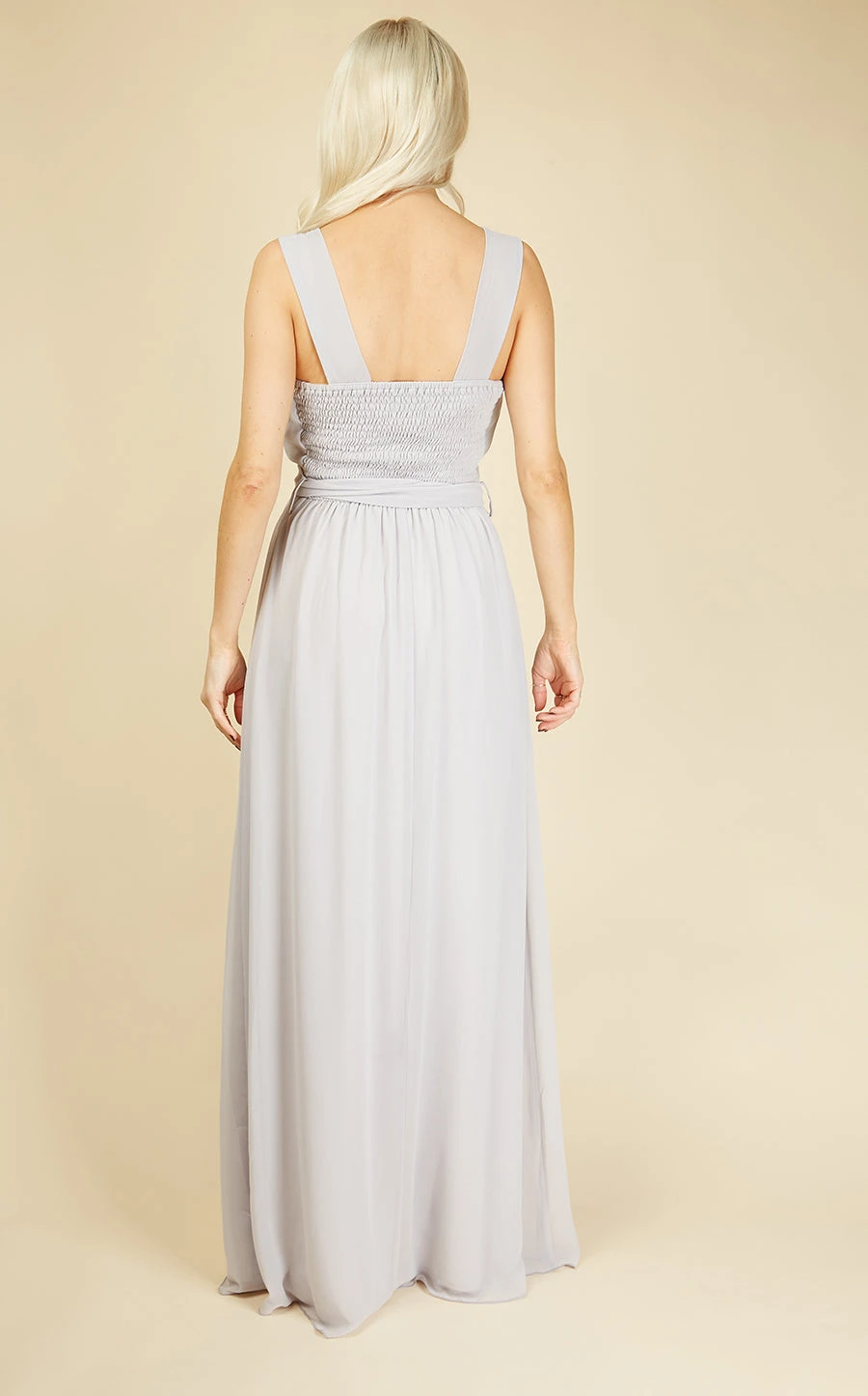 With it’s plunging neckline and waist-cinching tie, this is one sassy little bridesmaid number. The soft fabric and chic ice grey shade will make you feel ultra-feminine – just add delicate jewellery. Â