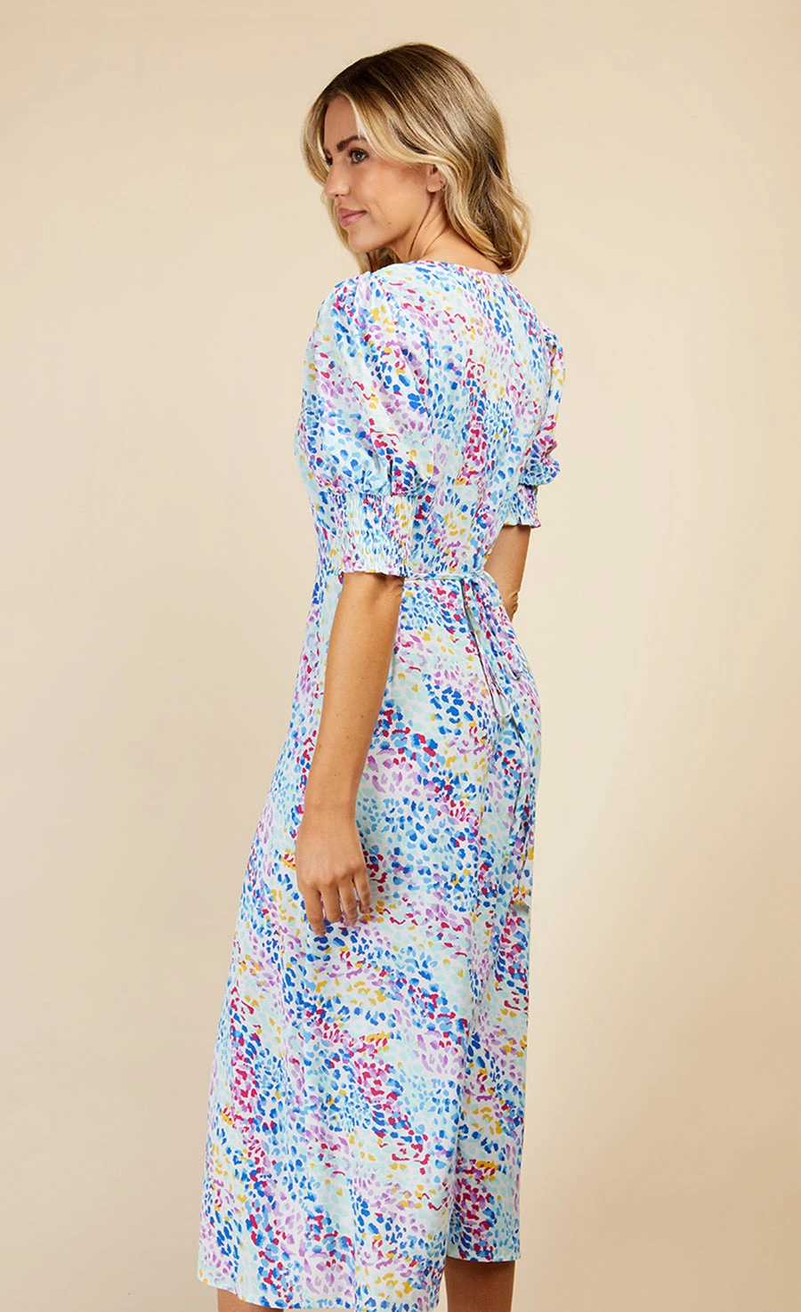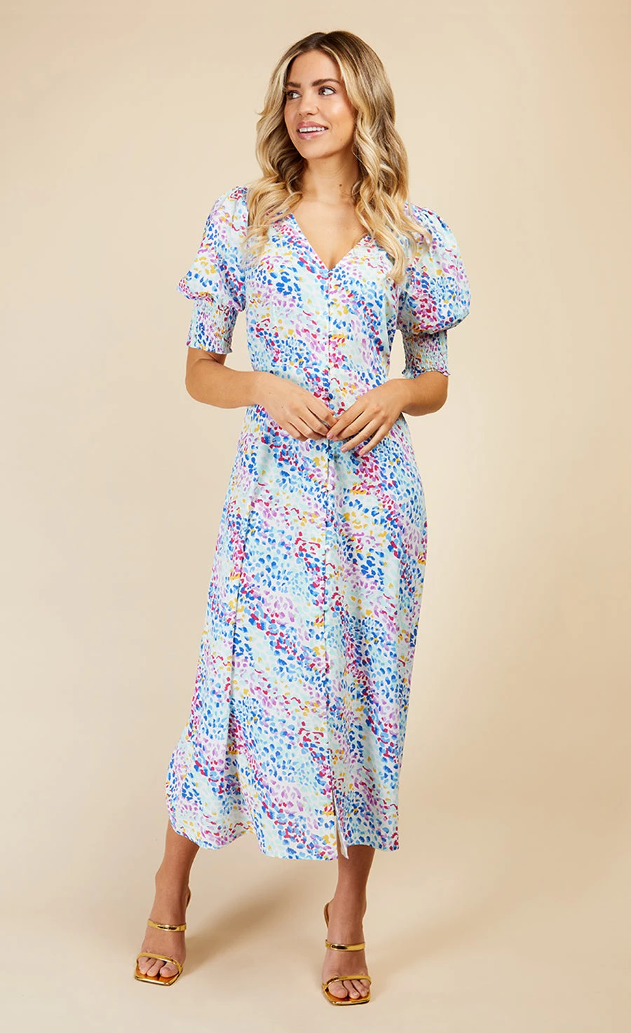 Just when you thought you couldn’t love leopard print any more, we’ve given it a summer-ready rainbow glow-up. Cut in a timeless tea dress style with a waist-defining fit, feminine puff sleeves make it extra special. Add trainers for a laidback look or strappy heels for special occasions.Â