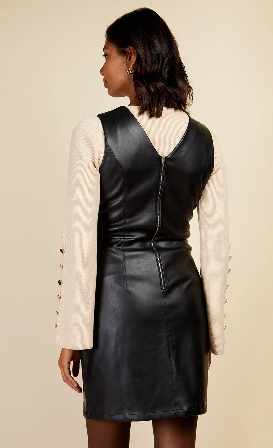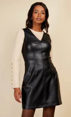 The LBD that’s just perfect for your cold weather wardrobe, crafted in a black PU and designed with a cinched in waist and v-neckline. Style over a ribbed knit with chunky ankle boots.