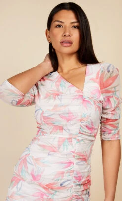 Sassy and statement – just how we like our dresses. Splashed with a mood-boosting floral print and framed by an asymmetric neckline, full-body ruching shows off your curves to perfection.. Heels and a clutch make it wedding-ready. Print placement may vary.