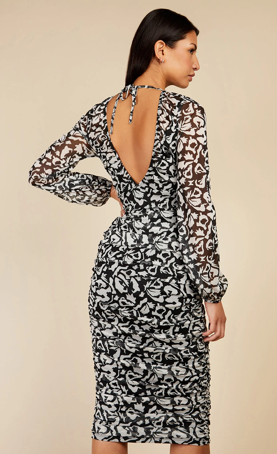 Little Mistress Monochrome Printed Mesh Midi Bodycon Dress