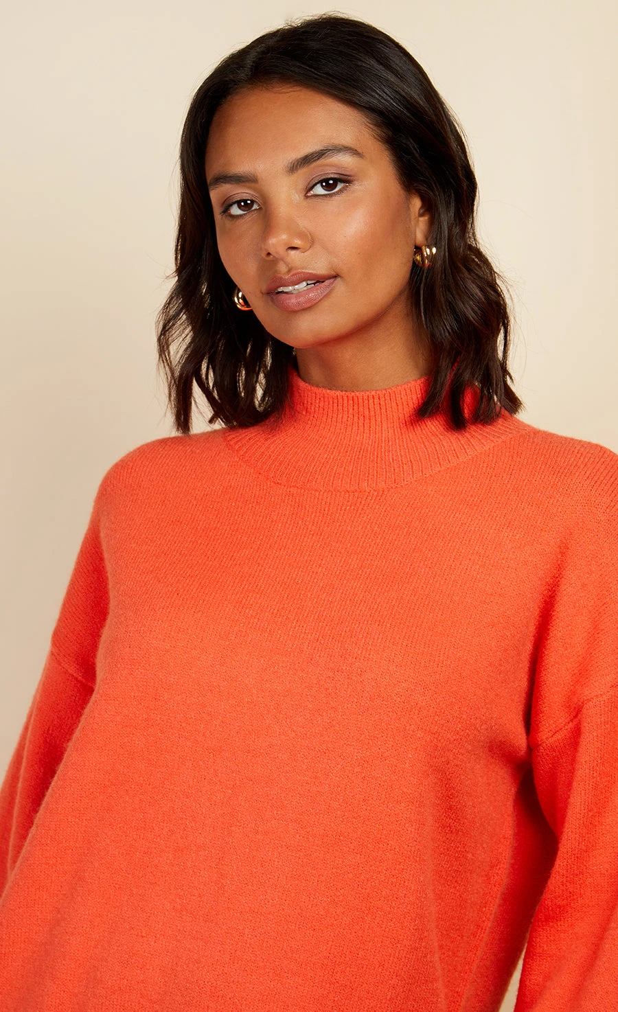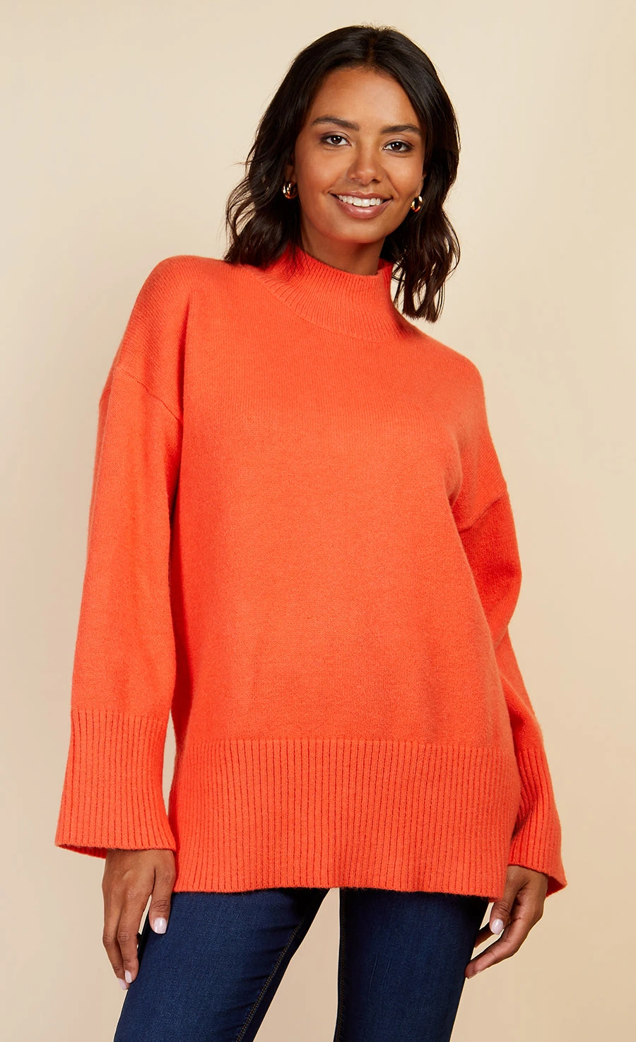 Every capsule wardrobe needs a staple knit and this one has our vote! Designed in a relaxed fit with a high neck, perfect for those chilly Winter days. Style down with denim or make a statement in a PU skirt and biker boots.
