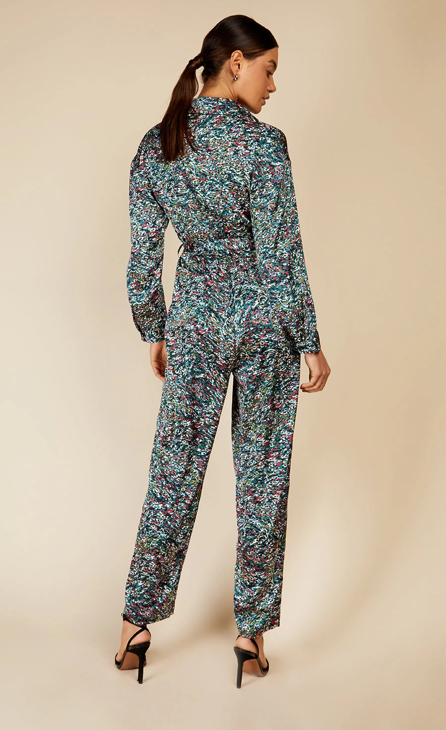 Whether your heading to a Winter wedding or brunch with the girls , this versatile jumpsuit is a chic solution for all occasions. Designed with a nipped in waist and crafted in a green printed satin, style with biker boots or barely-there heels depending on your occasion! Print placement may vary.
