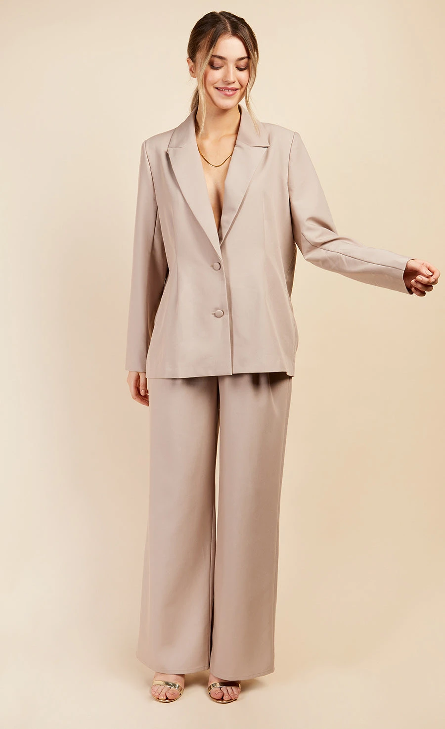 Add a little luxe to your Winter wardrobe, our tailored stone wide leg trousers are perfect for taking you from desk to date, all season long. Co-ord item available.