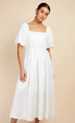 Crafted with a charming waffle texture, this midaxi dress combines comfort with contemporary style. A square neckline adds a touch of sophistication, while the A-line silhouette provides a flattering fit. Pair with metallic barely there heels and statement earrings.